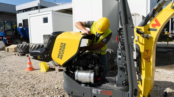 En matière de puissance, la ET08 exauce tous vos souhaits. Elle se caractérise par une largeur très faible de seulement 700 mm. Elle est donc capable de franchir les portes sans difficulté et n’abîme pas le revêtement du sol grâce à ses chenilles en caoutchouc. L’accent a été mis sur sa puissance hydraulique. Les équipements peuvent être utilisés sans problème avec le circuit hydraulique auxiliaire de série. Elle est équipée du célèbre moteur Yanmar avec une puissance de 11,6 kW, un outil véritablement puissant pour effectuer divers travaux.