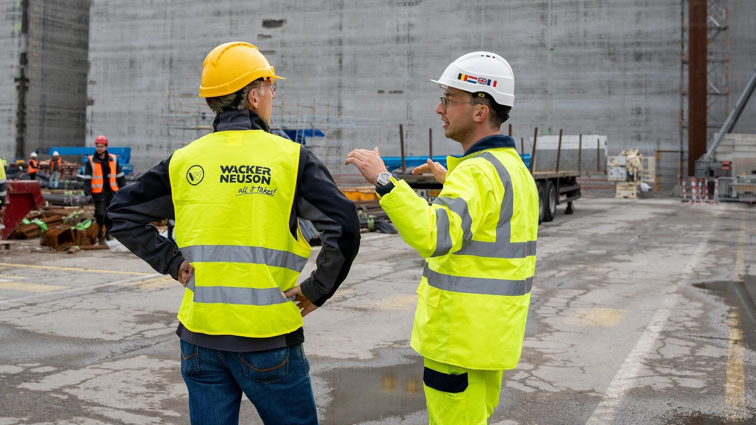 Wacker Neuson unterstützt diese Baustelle mit seiner langjährigen Expertise im Bereich Betonverdichtung. Zum Einsatz kommen mehr als 120 leistungsstarke Hochfrequenz-Innenrüttler IRFU und sorgen während der tagelangen Arbeiten für konstant hohe und zuverlässige Verdichtung. „Jeder Senkkasten wird über einen Zeitraum von sieben bis acht Tagen 24 Stunden am Tag gegossen. Dabei muss kontinuierlich verdichtet werden. Auf die hohe Beratungsqualität von Wacker Neuson und die Zuverlässigkeit der Produkte können wir uns auch bei diesem Projekt absolut verlassen. Wacker Neuson hat für all unsere technischen Problemstellungen sehr gute Lösungen gefunden,“ erklärt Matthijs Liefooghe, Technical Superintendent Heavy Equipment, Jan de Nul/TM Edison. Lex van Leusden, Account Manager Betontechnik bei Wacker Neuson in den Niederlanden, ergänzt: „Bei Projekten wie diesen kommt es besonders auf eine enge und vertrauensvolle Zusammenarbeit mit dem Kunden an. Dass wir mit unserem Knowhow einen wichtigen Beitrag zur ersten Energieinsel der Welt leisten können, macht uns besonders stolz.“